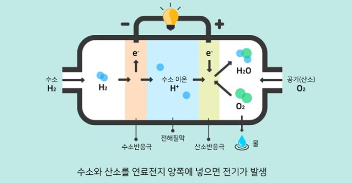 수소 연료전지는 산화-환원 반응으로 전기를 만드는 장치입니다.